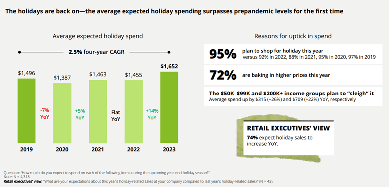 📈 Deloitte projects holiday consumer spending will grow 14% this year.